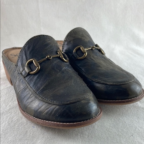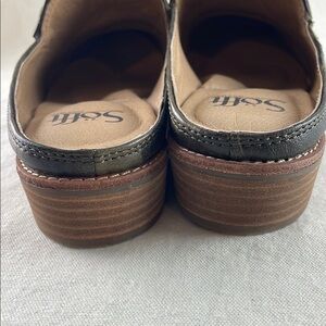Naoko Dark green olive leather mules / clogs. Size 8 1/2