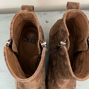 Sofft Canelli Suede Snakeskin Print Side Zip Heel Booties | Size 6.5