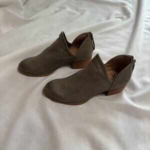 Olive Green Leather with wooden heel. Back Zip SF0012106
