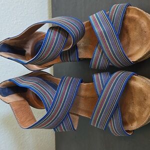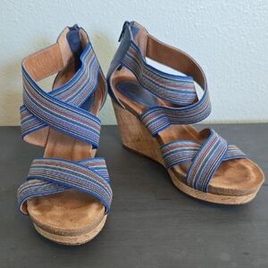 Sofft Cary Blue Stripe Wedge Sandals Size 7