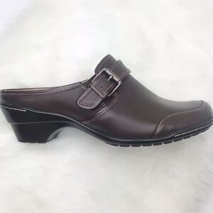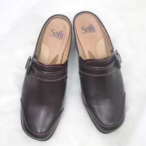 Sofft Chocolate Brown Leather Slip On Clog Shoes