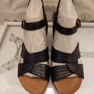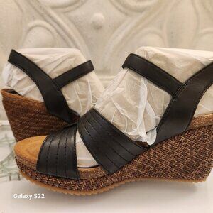Sofft "Clarissa" Black Leather Wedge Sandals. NIB. Size: Various. Brand new in box. No rips/stains/scuffs/tears/peeling. Original box and packaging. Pictures are of the 9.5, I have a size 11 in same box/condition. Boxes have some minor damage, the shoes perfect. Smoke free home. No odors. All offers are welcome. Thank you!