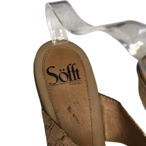 Sofft Cork Heel Sandals Size 8.5 with Gold Detail Peep Toe