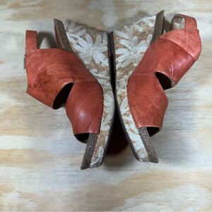 Sofft coral colored wedge embroidered heel sandals in preowned condition