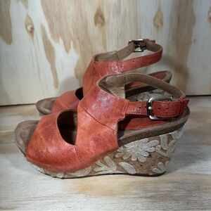 Sofft Corrina Mango Corral Embroidered Wedge Sandals Women’s Size 9