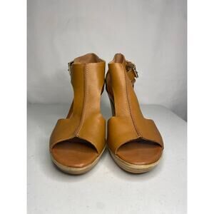 Sofft Dabney Brown Leather Open Toe Pumps Heels Womens Sandal Wooden Size 8.5