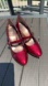 These have a small platform and a lightly padded insole. This brand is known for its exceptional quality and comfort. In direct sunlight, they are a candy apple red.