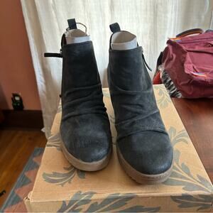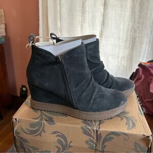 Sofft Emeree Saddle Suede Leather Ankle Boots Zip Booties Wedges Gray NEW Size 9