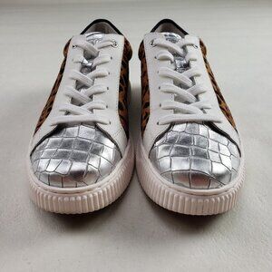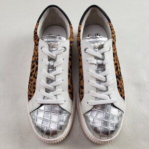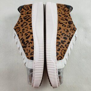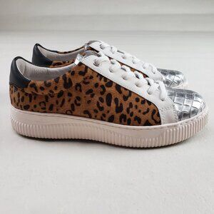 Sofft Fianna Animal Print Leather Sneaker Womens 8.5 White Lace Up Casual Shoe