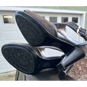 Sofft Gazelle Peep Toe Pumps Womens 6M Suede Brown Ankle T Strap 3” Heeled Shoes