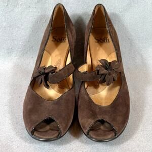 Sofft Geva Mary Jane Brown Suede Pumps Peep Toe Womens 9.5N