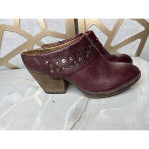 Sofft Gila Clogs Mules Women 9 Eu 40.5 Red Leather Studded Heels Slip Shoes On