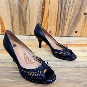 Sofft | Gillen Black Woven Leather Peep Toe Heels Size 9N