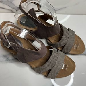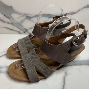 Sofft | Gray Nubuck Leather Strappy Veldon Wedge Sandals Sz 8.5