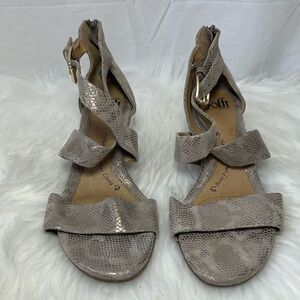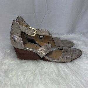 Sofft Innis Metallic Silver Textured Leather Cross Strap Wedge Sandals S…