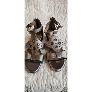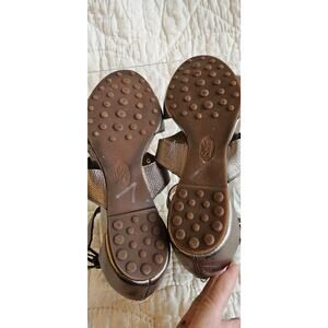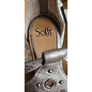Sofft Innis Wedge Sandals Womens Sz 9.5 W Metallic Silver Leather Strappy Shoes
