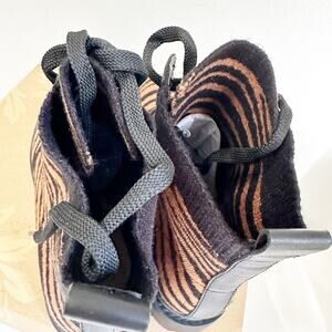Söfft Landee combat boots featuring a bold black and tan tiger print knit upper with durable lug soles and a soft stretch knit collar. These boots are the perfect mix of style and comfort. Lace-up front, cushioned footbed, and classic round toe. Brand new in box (NIB), never worn.