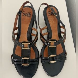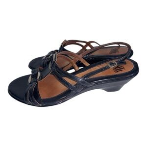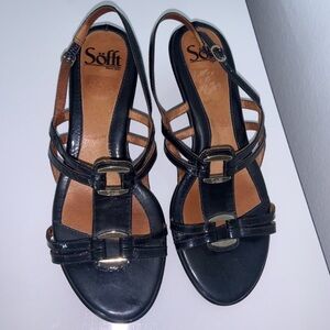 Sofft Leather Black Wedge Sandal Womens 8.5