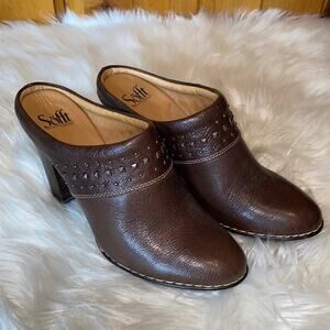Sofft Leather Brown Slip On High Heel Mules NWOT 9.5M