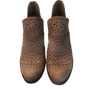 Sofft Leather Wyoming Tan Laser Cut Stacked Heel Ankle Boot Women’s Size 10