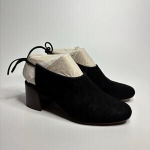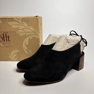 Sofft Lenora Suede Heeled Tie-Back Mule Booties in Black