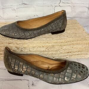 Sofft Maretto Gray Flats, Women's 7M, Snakeskin Pattern, Slip-On Shoes