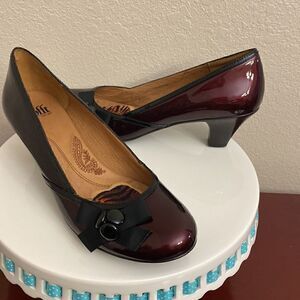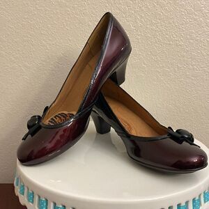 👠👠Sofft Maroon Patent Side Buttons & Bows Leather Heels Pumps!! Almost new!!