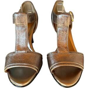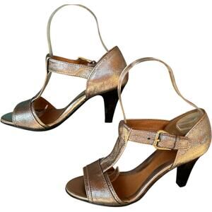 Sofft Metallic Silver Crackle T-Strap Heels Women’s SZ 7.5