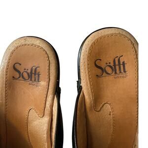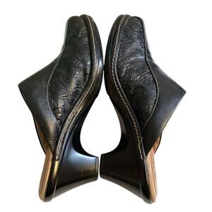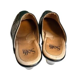 Sofft Mules Shoes 7M Black Leather Floral Embossed Heels Slip On Bicycle Toe