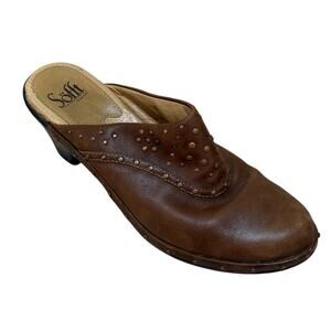 Sofft Mules Women 8 Brown Studded Leather Western Slip On Casual Boho Outdoor