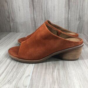 Sofft Carrey Orange Suede Slip On Open Toe Mule Shoes Women's Size 7M