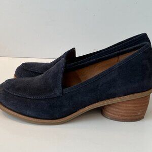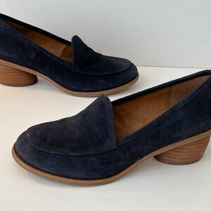 Sofft Napoli Navy Suede Leather Stacked Heels Slip on Loafers ~ Women's Size 8M