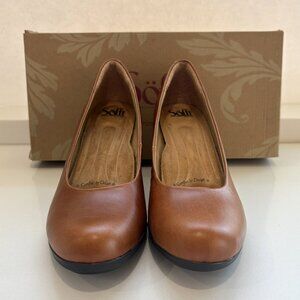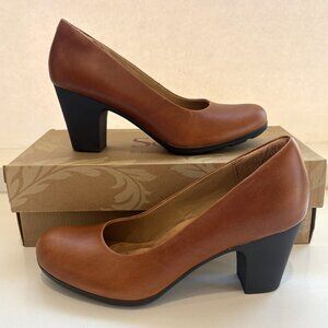 NEW Sofft Nasia Pumps Block Heels Leather Cork Brown Size 9 NIB