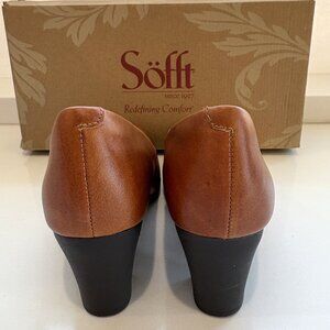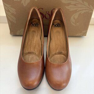 Sofft Nasia Pumps Block Heels Leather Cork Brown Size 9 NEW