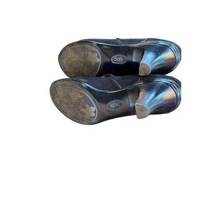The Sofft Navy Blue Suede Mary Janes Kitten Heels in size 9.5 offer a retro vibe with their thick heel and pump style. These stylish shoes are perfect for women who want to make a statement with their footwear. The navy blue color and suede material give them a classic yet trendy look, while the kitten heel adds a touch of elegance. These mid-height heels are comfortable to wear and versatile, making them a great addition to any wardrobe.