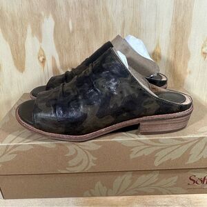 Sofft Netta Olive Camo Leather Slides Women’s Size 7