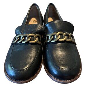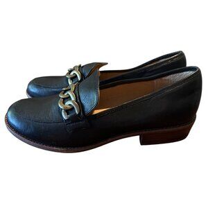 Sofft Nevara Black Leather Loafers With Metal Chain Detail Size 8.5M