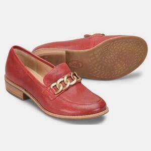 Step out in style with these beautiful Sofft Nevarra Italian leather loafers! These stylish shoes feature a chic chain detail and are crafted from high-quality red leather, ensuring both comfort and durability.