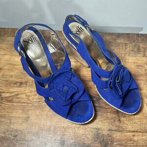 Sofft Odell Blue Suede Cork Platform Sandal Heels Womans 10 Blue Suede EUC