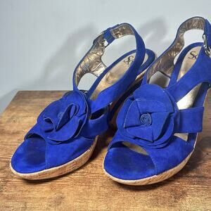 SOFFT Odell Blue Suede Cork Platform Sandal Heels Women’s 10