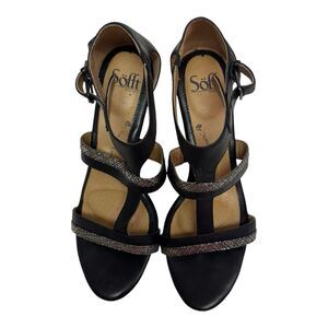 Sofft Pippa Black Wedge Sandals T Strap Ankle Strap Comfort Shoes