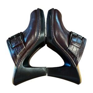 Sofft Platform Mules Clogs w Buckle Size 8.5 Dark Brown Raisin Leather Y2K