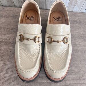 Sofft Prewitt Patent Leather Horsebit Ivory Loafers Size 6.5