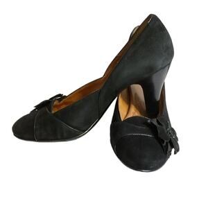 Sofft Pump Shoe SWomen's Size 9.5M Trimmed Black Suede Leather Kitten Heel