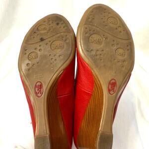 Sofft Red Leather Camira Peep Toe Wedge with Gold Buckle Detail. Womens size 9.5