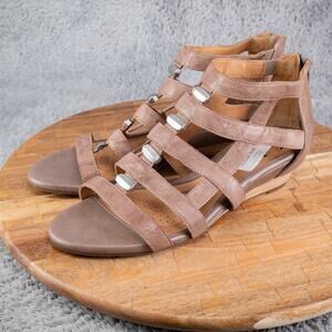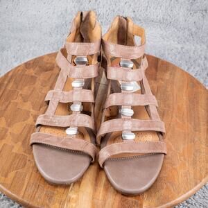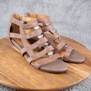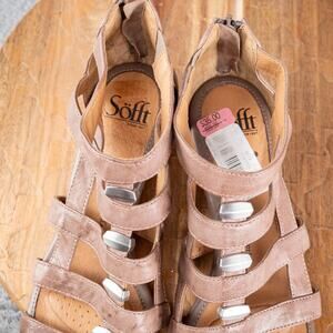 Sofft Rio II Leather Caged Wedge Heel Sandals Taupe US 9.5 M New