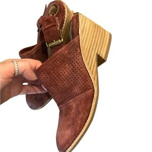 Elegant red suede mules with a comfortable slingback design. Perfect for any occasion, casual or dressed up!