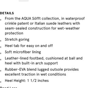 This is a brand new, with partial tags, but no original box in a size 7.5. The upper is suede and the sole is rubber. Perfect for Fall and Winter, but could be year round style. This is a slip on boot, no laces or zippers. All of my items are well cared for and come from a smoke free home. These are brand new, great quality and retail for $165.00. Considerate offers welcome.