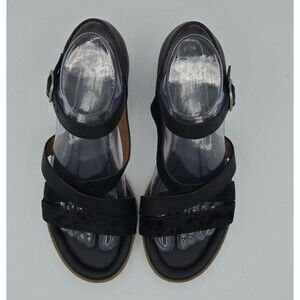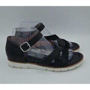 Sofft Sandals Strappy Black Leather Low Wedge Heel Back Zipper Womens 8 M