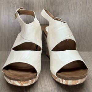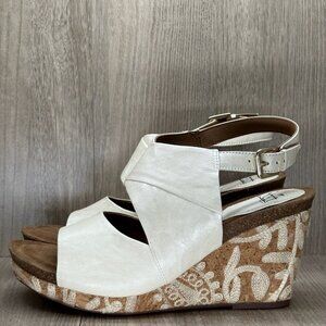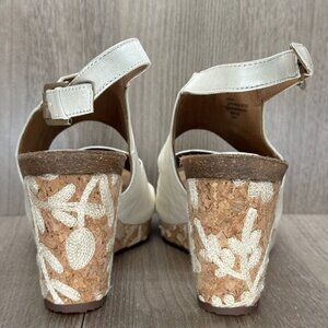 Sofft Sandals Womens 11M Corrina Cork Embroidered Wedge Leather Off White